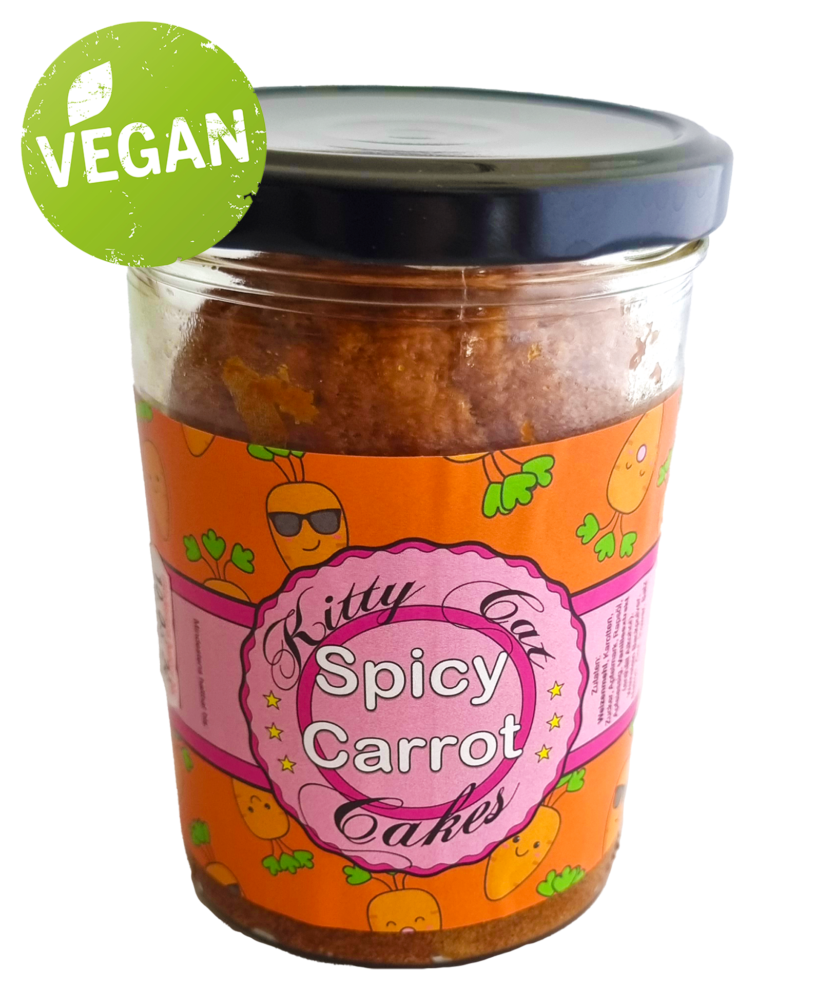 Zutaten: Weizenmehl, Karotten, Zucker, Apfelmark, Rapsöl, Apfelessig, Vanilleextrakt, Weinstein Backpulver, Natron, Zimt, Ingwer, Salz